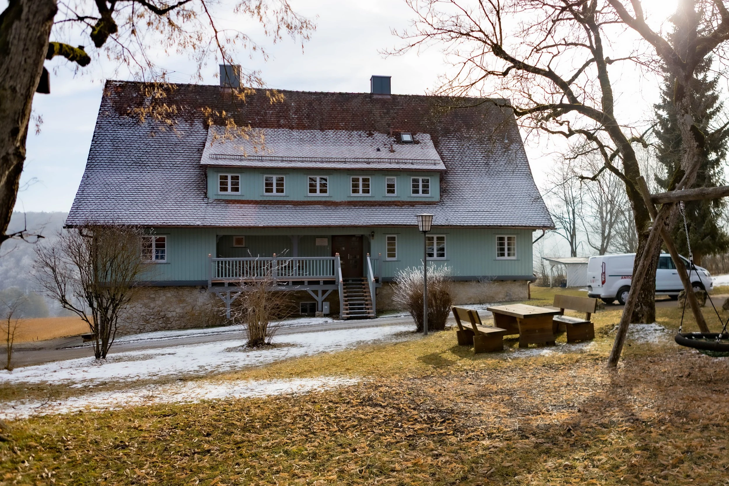 Vier sorgfältig renovierte Ferienhäuser bieten Platz für kleinere und größere Gruppen. Die gemeinsame Unterbringung stärkt den Zusammenhalt und ermöglicht informelle Gespräche außerhalb des Programms.