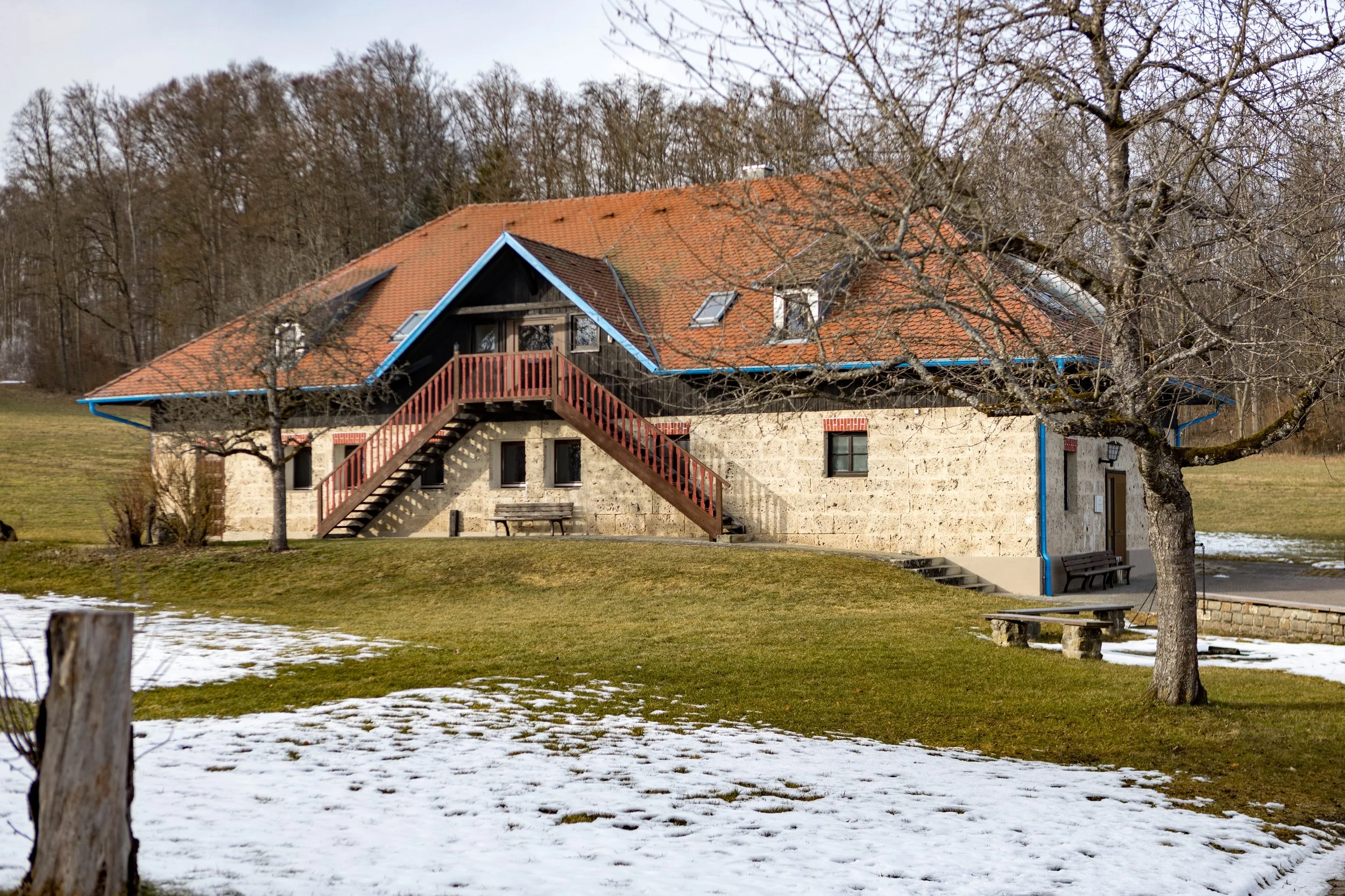Das Gesindehaus auf dem St. Georgenhof bietet Platz für bis zu 34 Personen. Es verfügt über eine Küche, einen Aufenthaltsraum und eine Feuerstelle im Außenbereich.